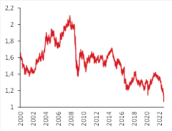 Większość z w/w problemów nie będzie dla zaznajomionych z EM wielką nowością. Wyprzedaż tamtejszych aktywów nie jest też zaskoczeniem. Oznacza to, że Wielka Brytania nie dysponuje taką suwerennością w polityce gospodarczej, jak Stany Zjednoczone (co do strefy euro werdyktu nie ma). Problemem są bowiem ograniczenia dla tej polityki stawiane przez inflację i (nie)równowagę zewnętrzną. Nie chodzi o to, że Wielka Brytania zbankrutuje lub czeka ją kryzys. Po prostu w obecnych warunkach inwestorzy nie są skłonni finansować podwójnego deficytu (fiskalnego i na rachunku obrotów bieżących) przy poziomach kursu i stopach procentowych obowiązujących przed przemówieniem nowego kanclerza zapowiadającym cięcia podatków, od których zaczęliśmy ten tekst. Na koniec warto zauważyć, że w poprzedniej dekadzie wyglądałoby to inaczej, łagodniej dla brytyjskich władz, wspomniane ograniczenia dla polityki gospodarczej były bowiem na całym świecie mniej wiążące.